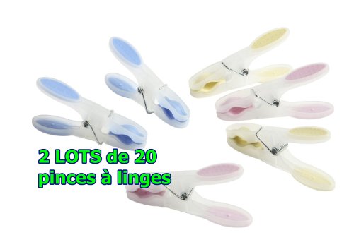 2 paquets de 20 pinces à linge plastique couleur pastel.Ressort en plastique à pinces à linge pas très pinces avec ressorts composition 15%metal